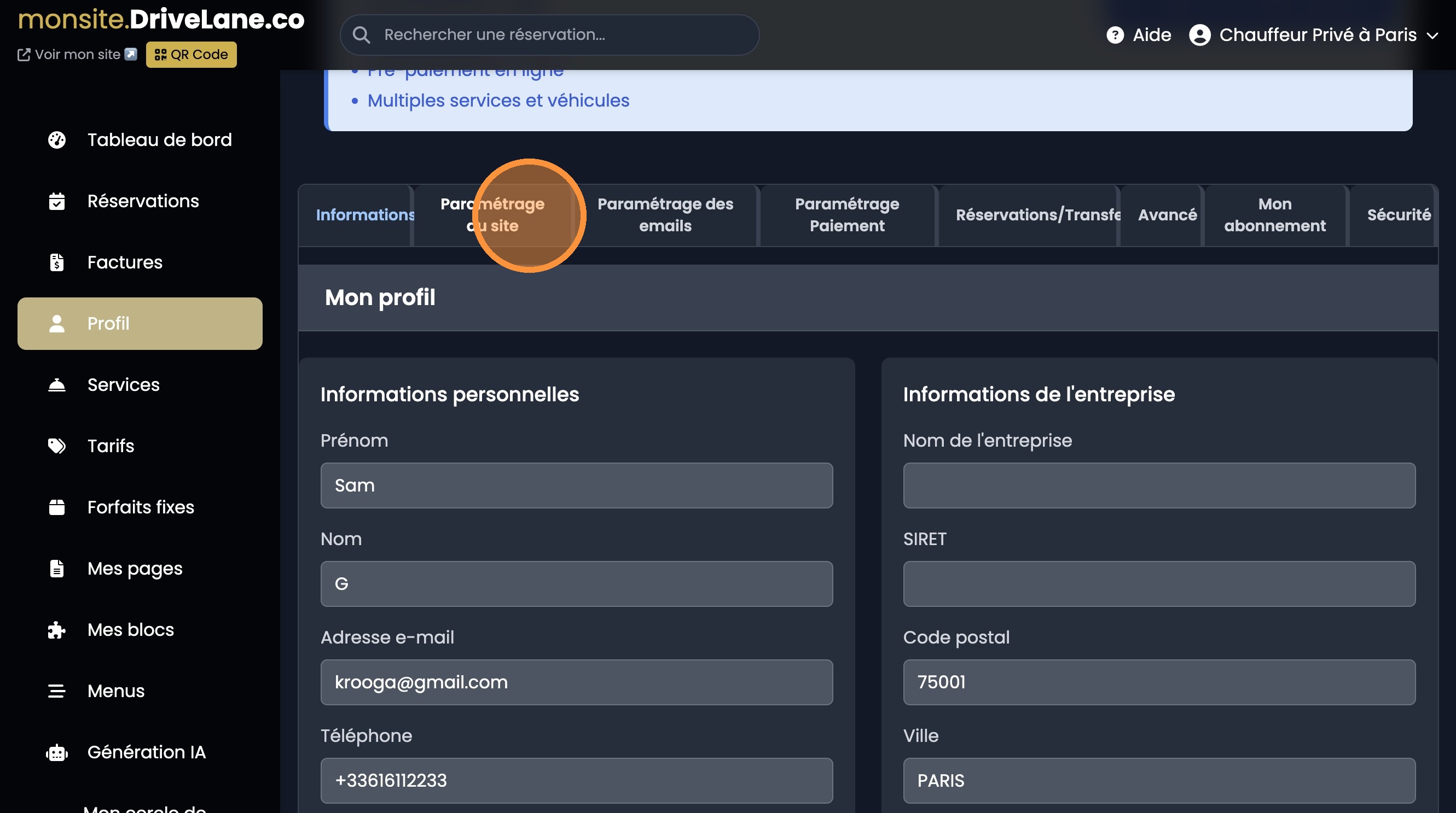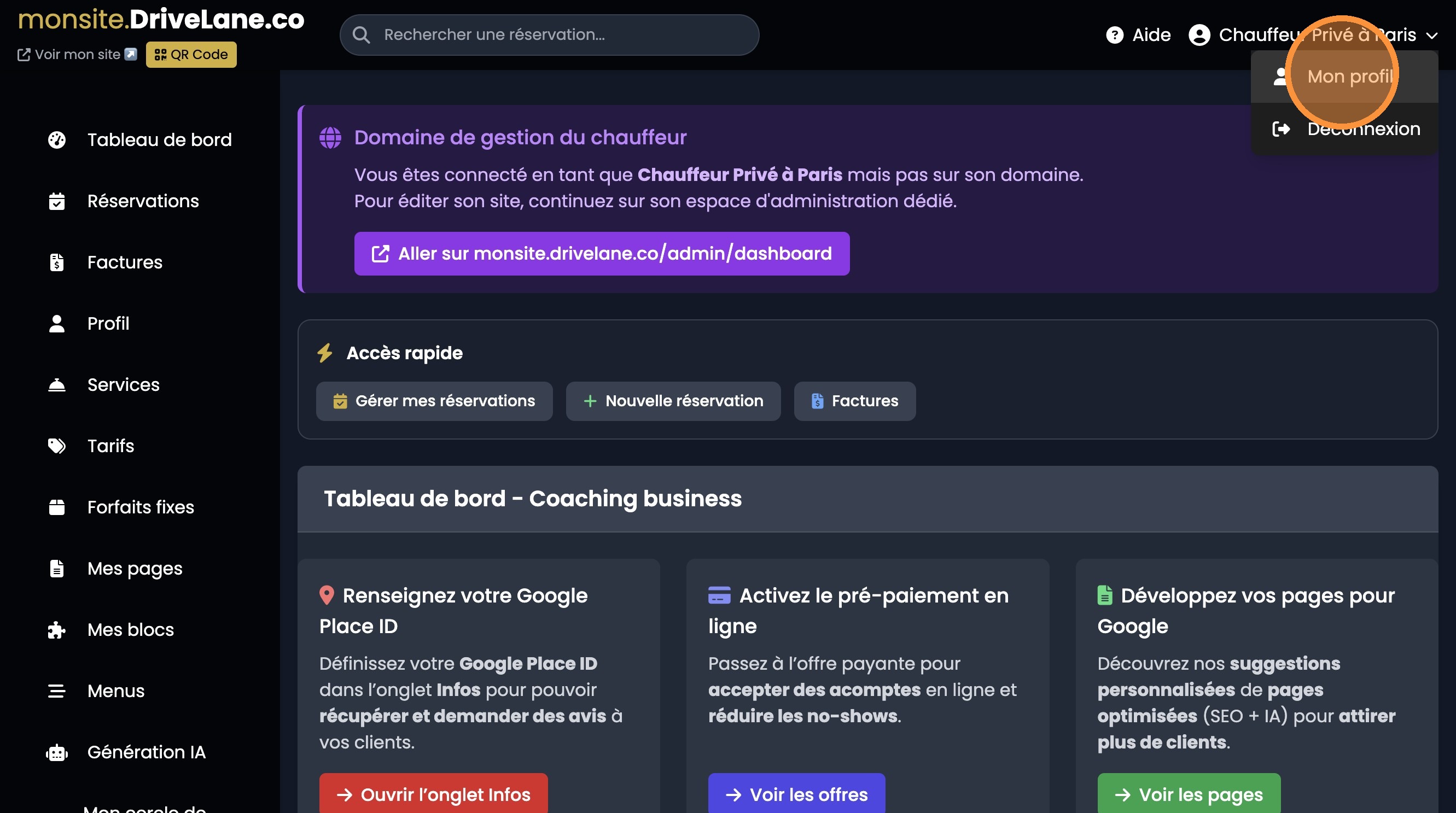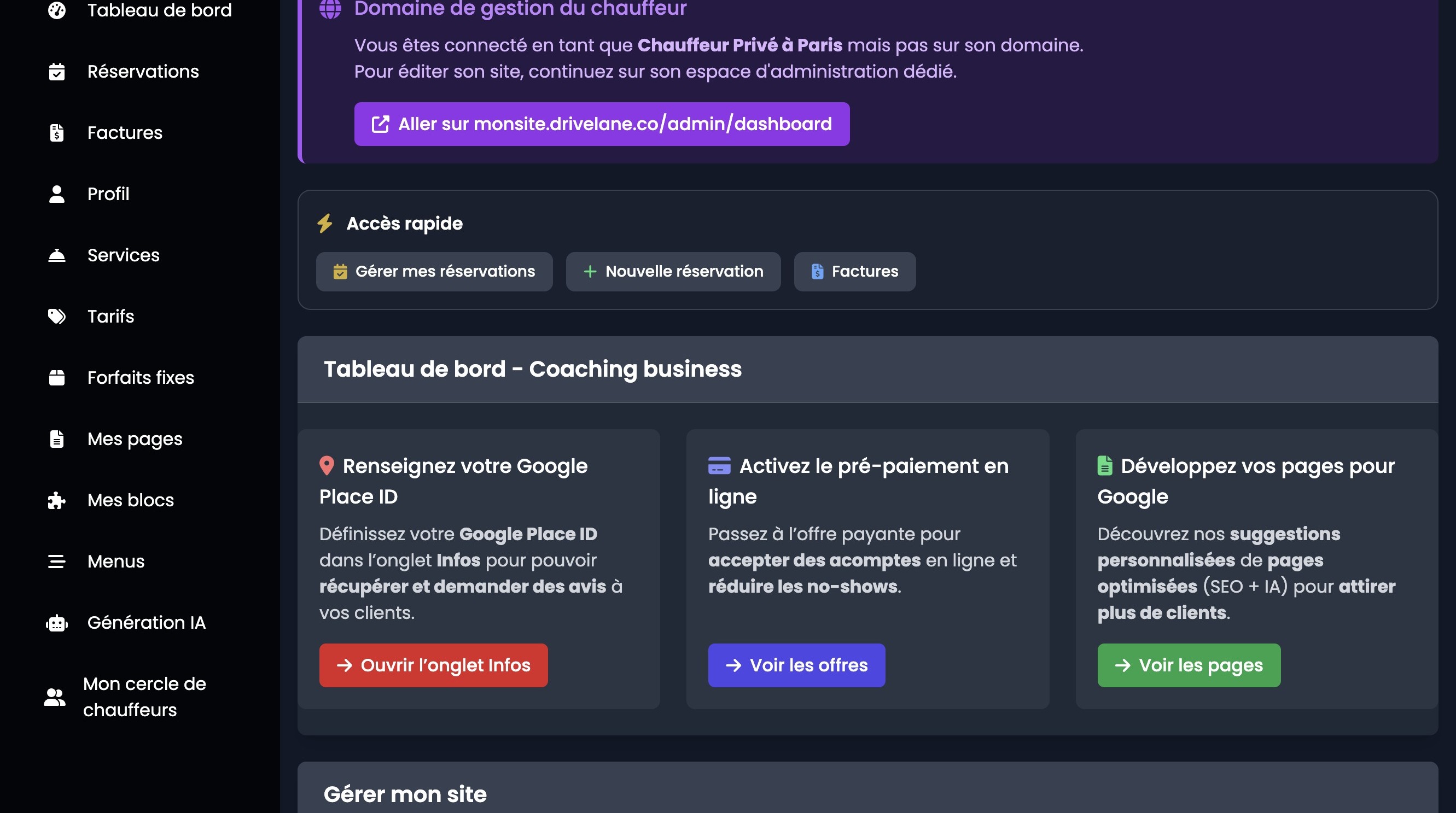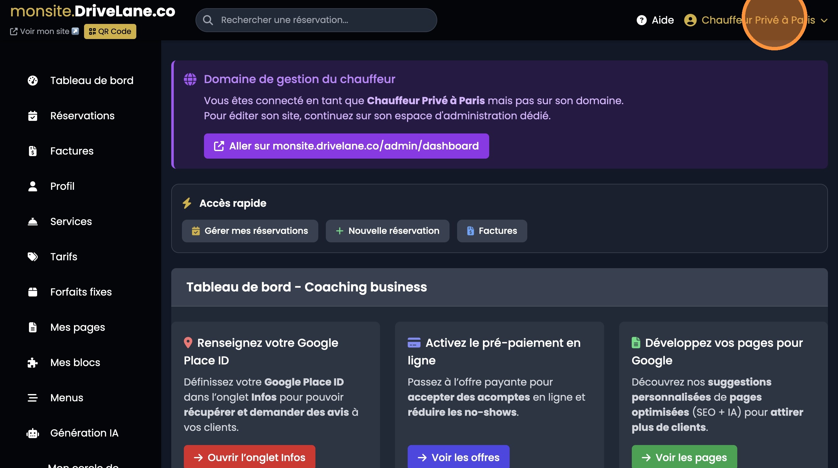 1. Rendez-vous sur https://drivelane.co/admin/dashboard